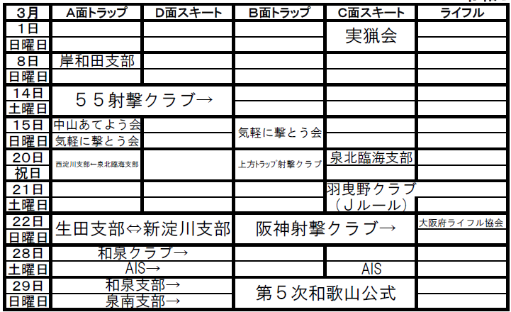A~D面・ライフル射場の営業時間のご案内については
